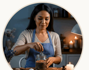 Aprenderás a combinar ingredientes con intención terapéutica para influir en cuerpo, mente y emociones.