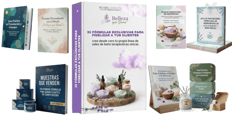 “Belleza que Sana™” es un método exclusivo de formulación natural que te enseña a crear tu propia línea de sales de baño terapéuticas, desde cero, con un enfoque en bienestar real y ventas consistentes.